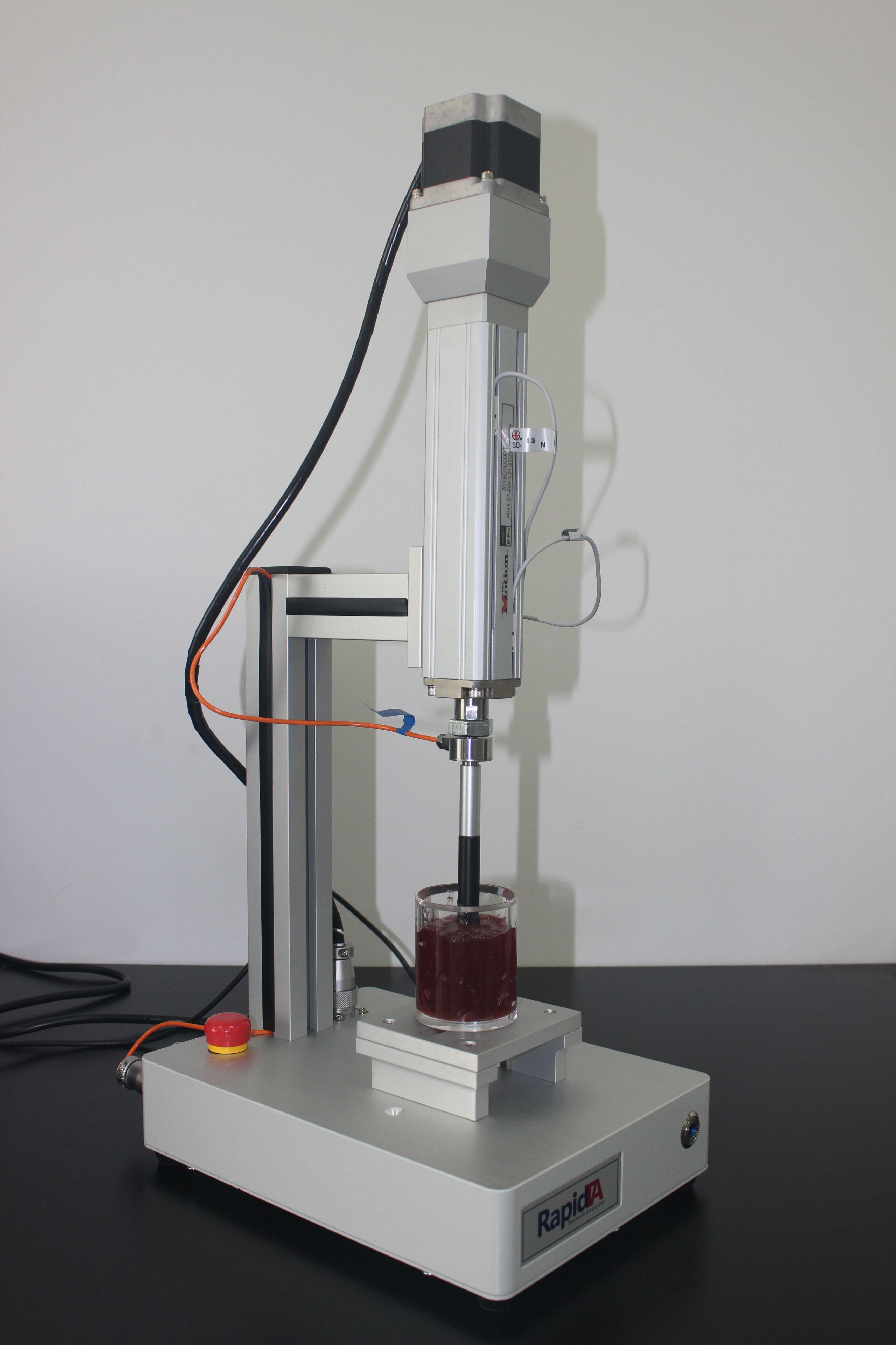 将100mL 烧杯置于质构仪上,选择P/0.5R 为测试探头,测前速率与测试速率为0.5mm/s,测后速率为1mm/s,触发力为5g,压缩距离为20mm,记录凝胶破裂时的zui大力,单位为g,并根据探头截面积换算为g/cm2。连续测试三次,取其平均值,并计算标准偏差。