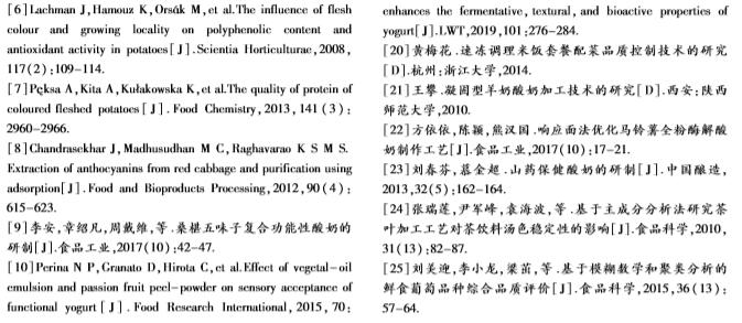 Technical articles2019年,上海交通大学农业与生物学院研究人员在国内食品期刊《食品工业科技》在线发表了题为“紫马铃薯酸奶的工艺优化及其品质评价模型的建立”的研究论文。在该论文中,研究人员使用上海腾拔Universal TA质构仪测定紫马铃薯酸奶的硬度、粘附性、胶着性和内聚性等指标。