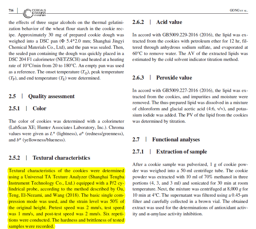 在该研究论文中,研究人员利用上海腾拔Universal TA研究型质构仪用于测定曲奇饼的硬度和脆性。