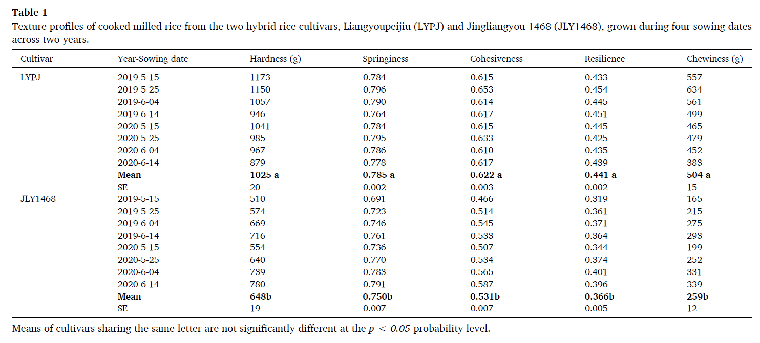 Technical articles近期,湖南农业大学作物生理与分子生物学教育部重点实验室研究人员在国际食品期刊《Food Chemistry: X》发表了题为“Texture and digestion properties of hybrid rice: A comparison between two c*rs released 18 years apart"的研究论文。在该论文中,研究人员利用上海腾拔Rapid TA+质构仪测定杂交水稻蒸煮米的硬度、弹性、回复性、内聚性和咀嚼性等指标。